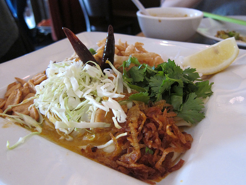 We were a bit lost on trying to decide what noodles to get. I thought they all sounded fairly similar- a little coconut chicken with a slightly different noodle and vegetable. Our server recommended the Nan Pia Dok which we found a bit over-cooked. The noodles were mushy and the curry was fairly mild despite the chiles in the dish. I would have liked to have tried the garlic noodles with duck instead.