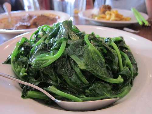 We were trying to keep to an all-Burmese menu but I couldn’t resist the wine and garlic stir-fried pea shoots. As it turned out, I greedily ate most of this dish myself.