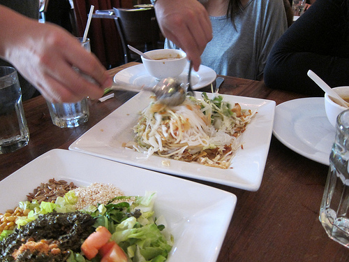 After tasting both salads, I preferred the tea leaf salad though it was quite a bit oilier. The rainbow salad with 22 different ingredients and 4 types of noodles left me somewhat confused. I love noodles but I prefer to eat one type at a time.