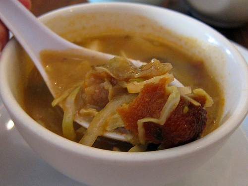 We were captivated by the vegetarian Samusa soup. I never thought to put samosas (or samusas as the Burmese say) into soup. The slightly piquant flavor made the vinegar/tart fiends in us smile.