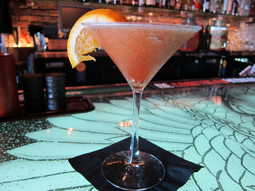 Vixen started out with their infusion (as soon on the bar in jugs with lots of fruit). It came without any fruit and tasted okay. It looked like a glass of water so I didn’t bother taking pictures of it. She got the Makers Mark BBQ (Makers Mark, Antica Carpano, Peychaud’s bitters, Aperol, BBQ sauce). We were probably the most intrigued to try this. As it turned out, it didn’t reek of BBQ sauce and the garnish of jerky was very nice. It does amuse me though when bars use fairly easy to find base spirits and then try to make craft cocktails with them. In the case of the BBQ cocktail, I have a feeling it’d be really amazing with a different bourbon.
