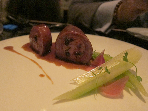 My favorite turned out to be the beef that had been braised in pear. Generally I prefer pork and the pork rib was absolutely fantastic but the adventurer in me that seeks out something new found it in the flavors of the beer. The pork rib was very familiar to me though I never expected the sunchoke, cherry and pine nut to evoke the slightest hint of “sweet and sour.” It must have been the cherry.