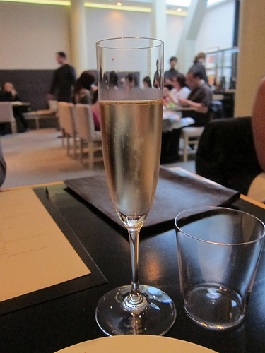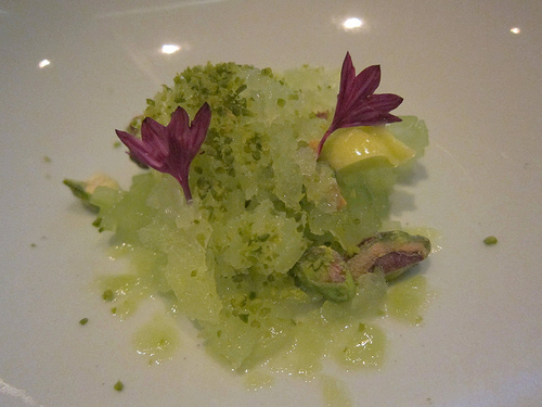 I thought it was tremendous service we got a round of sparkling wine before we even got water for the table. The amuse bouche of green apple and celery granita with pistachio was a nice light bite.