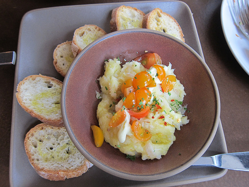 We had the summer salad from the dinner menu as it had padron peppers along with lemon cucumber, andante goat cheese, sun dried tomato and spiced onion. There was a spice I couldn’t identify but I have had it before. It evoked an Indian or perhaps Mediterranean flavor profile on an otherwise standard goat cheese and sun dried tomato salad. We ate this up.