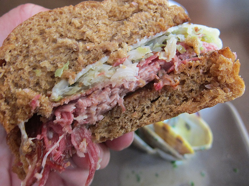 I felt bad again for Carina when her pastrami sandwich arrived looking like a slider. The bun was dry and she would have liked it on a regular hamburger bun if they were going to go with a bun instead of bread. It tasted like wheat. Shouldn’t it have been rye? She was 0 for 2 for pastrami this weekend. Maybe it’s time to stick to a Jewish deli for pastrami?