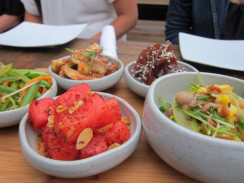 I particularly enjoyed the sweet lotus, sweet corn and tomato, mirin braised artichokes and asparagus namul.