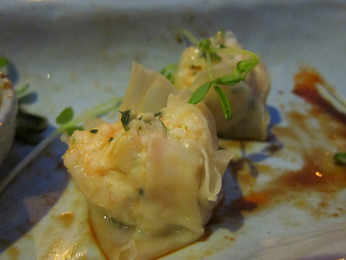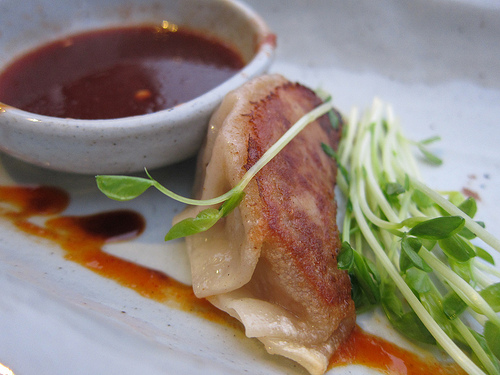 Of the three dumplings I had, I loved the duck with foie gras best.It hardly needed the sour cherry sauce. I actually would have liked the red chili sesame broth for the pork wontons to be spicier– and I’m usually not a spice hound.