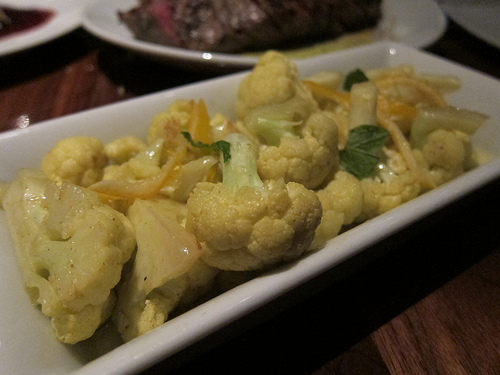 Of course we had to have a couple of sides. I loved both the light curry flavor of the cauliflower and the buttery cioppolini onions. The cauliflower was a great addition to the fish and the onions were a classic pairing with the steak.