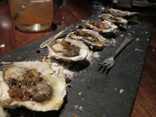 I went with the Sneaky Pete (Buffalo Trace bourbon, Aperol, lemon, grapefruit, simple syrup). Some other cocktails that appealed to me where the Gin Gin Mule (Bombay Sapphire gin, lemongrass syrup, lime, ginger beer), Summer Solstice (VeeV, orange juice, lime, honey water, black cherries, jalepeno) and the Smokey Margarita (Casa Noble silver, St. Germain, agave, lime and grapefruit).