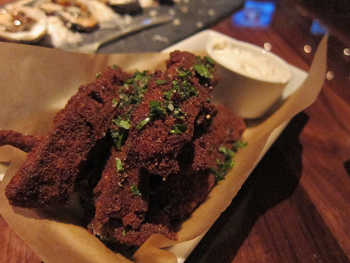 We started with a couple of appetizers; the oysters and the portabello fries with bleu cheese dressing. I loved the unusual vodka mignonette for the oysters. However, I wasn’t into the portabello fries. I admit I probably shouldn’t have ordered them considering I don’t like bleu cheese but I thought I could have the fries without the dressing. As it turned out, these really are best with the dressing.