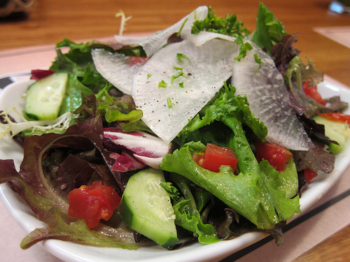 I must be one of the bloggers Midtown Lunch refers to as the one who’ll cover the sides and salad of Fat Spoon. As it is, the seafood curry is already over $10, his budget for lunch. In DTLA, it’s pretty damn hard to find a reasonably tasty lunch for $10 or less. I try to find a balance to my exorbitant pricey lunches with my usual $1-$1.25 tacos.