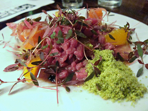 I did steal a bite or two of the raw beef before delighting in the squid with black ash and chorizo. It was just so pretty. It was easily one of my favorites of the night. The squid was so, so luscious.