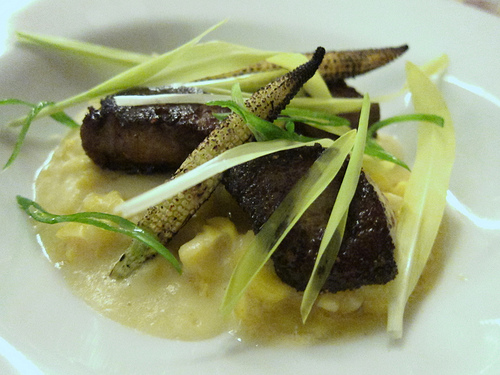 The foie gras with corn three ways (shown without the popcorn) was lovely. I enjoyed the baby corn along with the velvety textured foie.