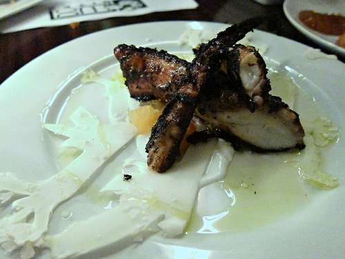 Next round brought us the plancha tandoori octopus. I really must find another word for “tender.” The only other time I had been impressed by the softness of octopus was knowing it was soaked in olive oil for three days over at Osteria Mozza. The cauliflower slice was very attractive. The last time I saw that was Ludobites 3.0.