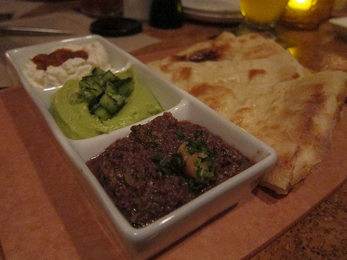 I tried flatbreads with a variety of dips including spicy white beans, black-eye pea hummus, spice roasted eggplant, house ricotta with pepernata, mashed avocado with goat cheese and California olive tapenade.
