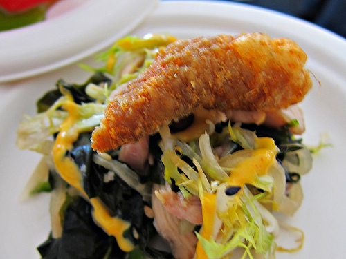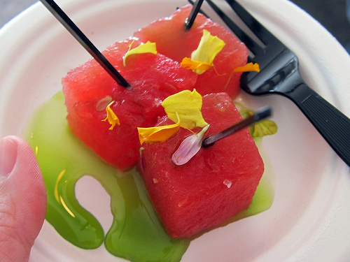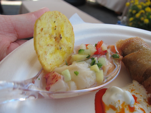 Giving my poor body less than 12 hours to digest the previous night, I decided to try to go light as possible. I started out with the watermelon and seaweed salad from Chaya Brasserie. Chef Haru was all smiles greeting everyone that swung by his booth. His booth was the only one I had seconds at.