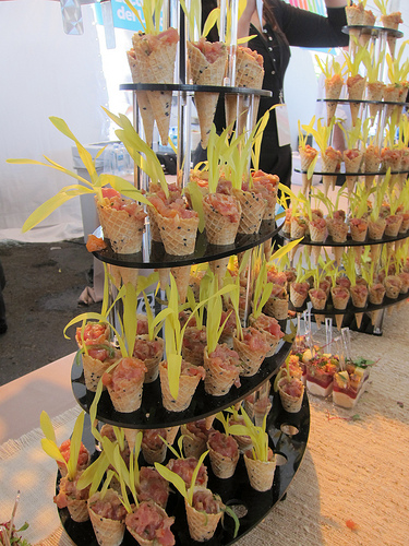 I hadn’t intended to stop by the McCormick & Schmick’s booth but then I heard foie gras and I couldn’t resist this tower of albacore. I was assured this wasn’t spicy tuna.