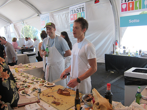 I watched an elderly Jewish couple yell at Chef Zach of Sotto for bringing pork to the Taste. Okay, if you don’t want any, move along. ‘Cause Mama wanted some pork! And how juicy and swine-y it was.