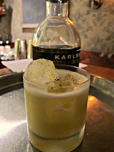 Daniel’s Faster Young Fruit (Karlsson’s Gold vodka, Dolin Blanc vermouth, lemon, simple syrup) was an amazingly simple but dignified cocktail, much like him. I was at BK one night when he was thinking about his recipe. He had smelled the Karlsson’s first from the bottle, had a little taste then went around the bar sniffing deeply, awaiting inspiration.