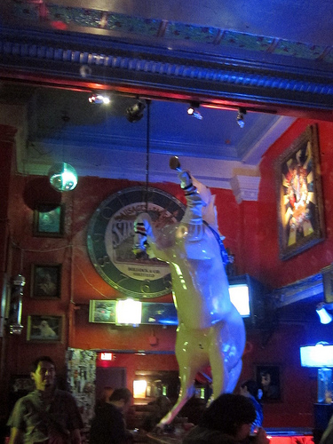 After the Redwood, we popped over to New Jalisco, a bar I’ve been fascinated by for years. Their specialty are michaeladas but I opted for a rum and pineapple ($6). Unfortunately, the bartender gave me a Screwdriver. English is not a strong point here. Be prepared to use your high school Spanish to get a drink.