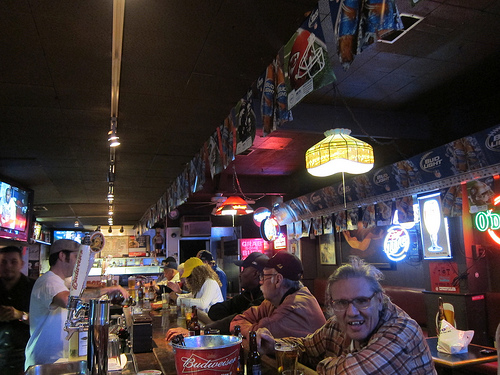 Hey, what kind of dive is this?$6 for a well whiskey & soda? Well, all right. I like them because they allow people to bring in food– more on that later.