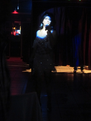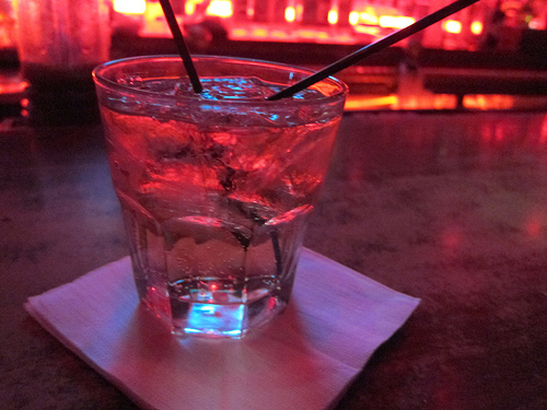 Beer turned out to be more expensive than my whiskey & soda. One ordered a whiskey sour and was served a trashy sweet concoction that every college (high school?) girl would be familiar with. I liked that they cut up three neon red Maraschino cherries and threaded them on a toothpick before serving. Didn’t I say they were classy?
