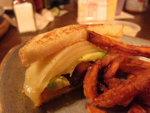 The pirate-themed bar served me a weird grilled cheese. Despite having snarfed down three tacos from Ye Olde Taco House #1 (really, more on that later!), I was still feeling snacky so I had half a grilled cheese. Um, this was a cheese sandwich of unmelted cheese. The sweet potato fries were good though.