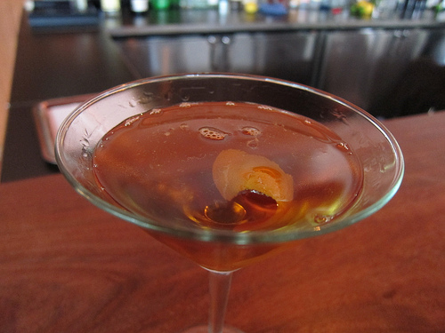 I had watched the bar manager carefully separate egg yolks from the whites and portion out the whites into little containers. He said he actually learned that trick from Morimoto. He gives the yolks to the kitchen so there’s no waste. The whites were to be used for sour drinks but in particular a cocktail named the Wild Man after a patron who frequents Redd. I wasn’t quite ready for a sour-type cocktail. I like those frothy things towards the end of my meal so I went with the Money Maker (Makers Mark 46, sweet vermouth, Yellow Chartreuse, Regan’s orange bitters). I had also considered the Casa Nova (spice rum, Amaro Nonino, orange, lime, ginger ale). Carina had Stonewall (209 gin, Berentzen’s apple liquor, Canton ginger, bitter lemon soda). She was slightly disappointed she didn’t get much apple flavor out of it. I was a bit amazed to watch the other bartender free-pour the ingredients for my cocktail.