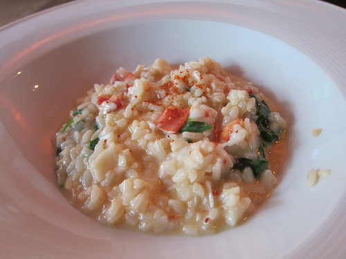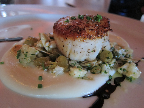 The next courses were the carnaroli risotto with Maine lobster and a diver scallop with cauliflower puree. I’ve been on a lobster kick lately and heartily enjoyed the sweet flesh of the Maine lobster. Carina loves savory foods with fruit so this scallop with raisins was a perfect dish to her.