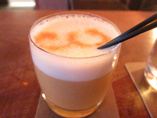 I was now ready for the Wild Man (Buffalo Trace bourbon, Benedictine, citrus, egg white, Angostura bitters “mustache”). I joked that the “mustache” really looked more like boobs but I was admonished by the bartender that at least he didn’t put dots on the boobs, I mean mustache…