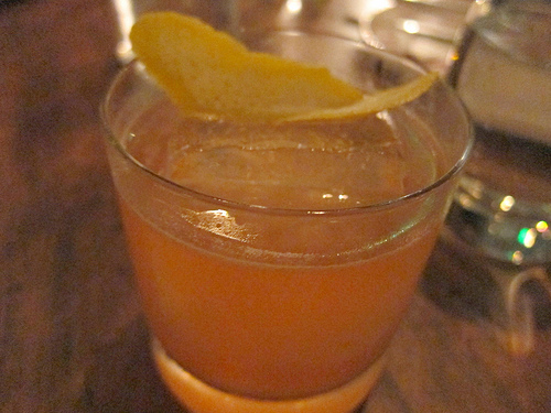 Bourbon– At the time there were two bourbon cocktails. I went for the one described as more like a Manhattan. Bourbon, Carpano Antica, Fernet Jelnick and All Spice Dram comprised of this cocktail. It was a sweeter, boozier Manhattan and made for easy sippin’ at the bar.