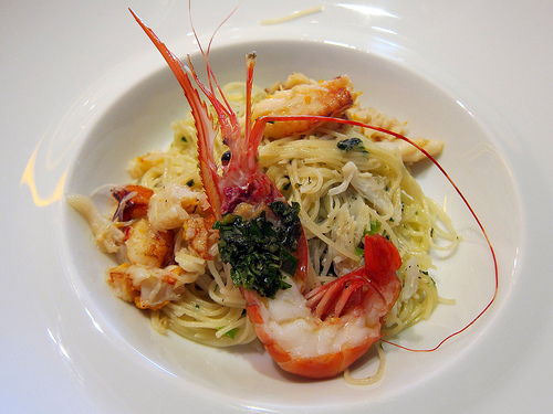 Our lunch was paired with wine. The spaghetti with dungeness crab by Jonathan Waxman was paired with a 2009 Sandhi Chardonnay, Santa Rita Hills. I was pretty excited about this pasta as I love seafood and found the prawn to be a bonus.