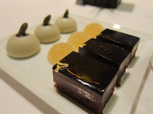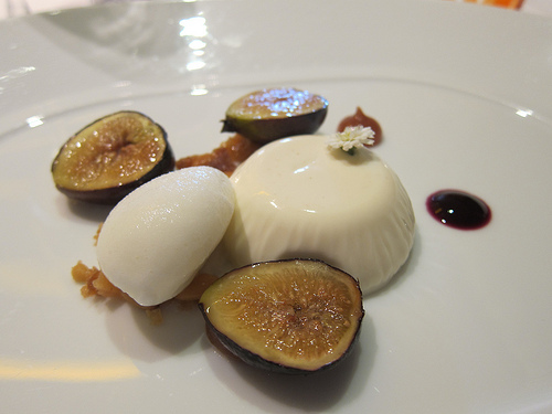 For dessert we had Patina Pastry Chef Sarah Koechling’s Warm Roasted Figs which was a panna cotta with pine nuts, nougatine and lemon sorbet. It was paired with 2010 Kunin Wines Late Harvest Viognier, Paradise Road Vineyard. I quite liked the gentle panna cotta. The day was particularly warm and it was an appropriate dessert for the day.