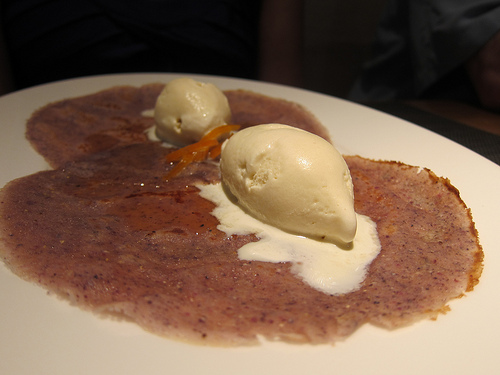 For dessert, we shared the blue corn crepes, cactus fruit sorbet and my favorite chocolate cake (not shown).
