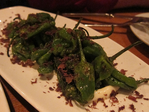 Then our server overheard us saying it was too bad one of our friends didn’t eat seafood. He immediately rushed to get her something else to eat. That was so kind and generous of them. I was secretly glad because I could tame the heat from the padron peppers with a piece of cheese.