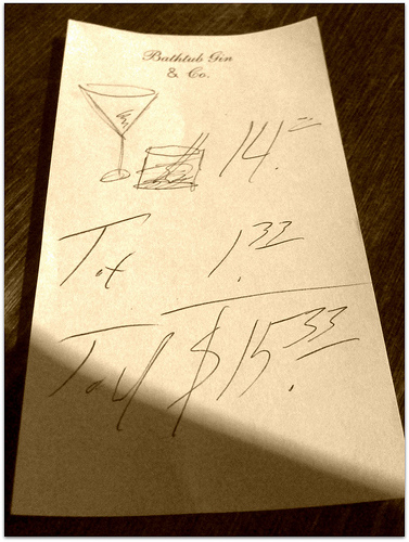 517 15th Ave E, Seattle, WA 98112 – (206) 323-9898Next we headed to another cute spot, Bathtub Gin & Co. We sat at the tiny upstairs bar where I watched our bartender free pour the cocktails. I know there’s a great debate about free pour versus jiggering and I have to say I prefer measured pours. My Sacramento Sidecar (brandy, Averna, maple syrup, lemon) was fine though it didn’t “sing” to me. I was more enchanted with the hand drawn receipt.