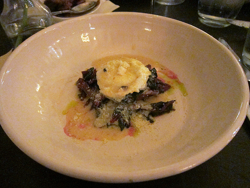Served over chard, the poached egg gently released its yolk, comingling with the vegetal and the truffle flavors and bringing a smile to my dining companions’ faces. What a lovely way to warm up on this chilly night.