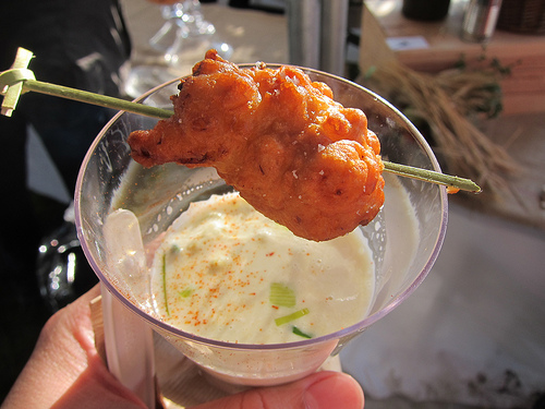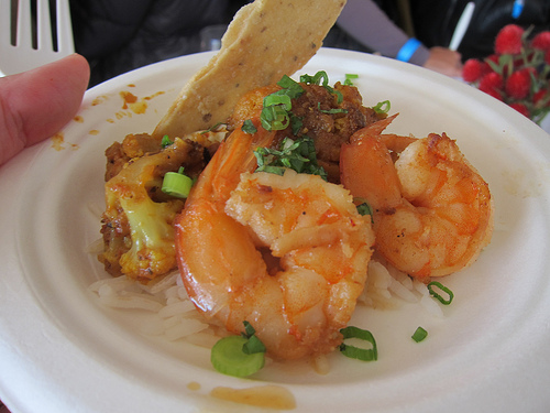 At Susan Spicer’s Bayona booth, we had the shrimp with curried cauliflower, yogurt and coriander. You really know the end of a food festival when they start doubling the portions. Really enjoyed the curried cauliflower.