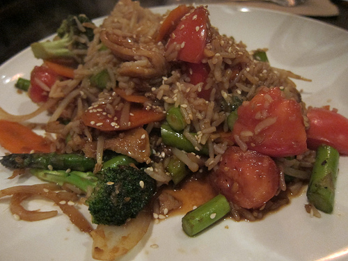 Start with either beef, chicken, pork or lamb. You may also order shrimp from your server and they’ll add it to the stir-fry.