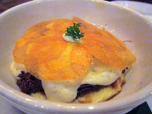 It’s interesting to me I also tend to gravitate towards “offal” or “weird” or lately “extreme” foods. Lamb’s neck shepard’s pie fit the bill easily as the “weird” thing that most people would probably avoid. As I suspected, I loved this with the thin crispy potato chips and creamy, de-constructed pie.