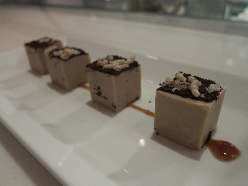 In my previous visits to Lukshon, I didn’t get a chance to order the foie gras ganache so I was determined to check this off the list. The four cubes arrived and I was a bit turned off by the too-cold texture. My guest likened it to ice-cold butter not being able to spread. It was really not a comfortable texture. However, I decided to leave it alone for a while and after it got to room temperature, it became amazing as foie gras should be.