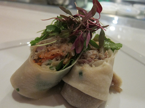 The cocktail list grew from five cocktails to seven. I tried the Formosa (Ethereal gin, Lillet blanc, atomized mizhiu tou (rice wine), ginger pearl onions) and my friend had the Camellia (silver needle white tea vodka, bergamot, Seville and Valencia oranges, bitters). She declared hers delicious. For previous thoughts on the other cocktails, check out my other Lukshon posts here and here.