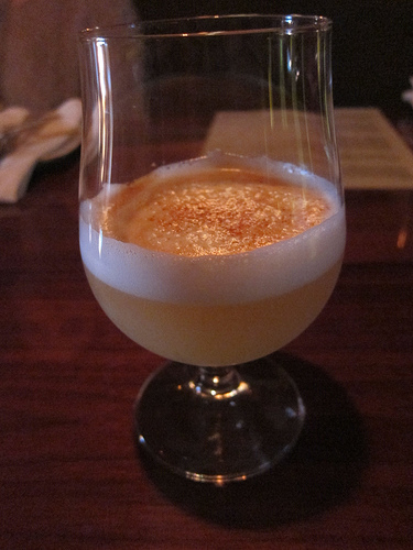 One of my favorite spirits is pisco. I was happy to have this Peruvian Passion (Oro pisco, lime, passionfruit syrup, egg white). It’s a very nice variation of a classic Pisco Sour.
