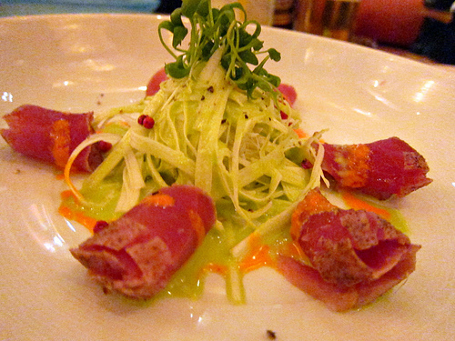 Very oddly, the Hearts of Palm salad came with tuna. There was no mention of such but our server said it would come that way. I did appreciate he seemingly made sure we were able to share all the dishes equally so far with two pieces of fish each.