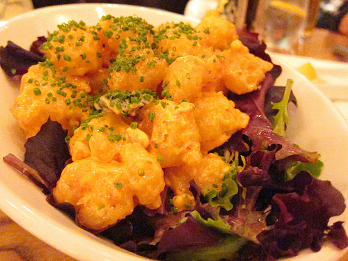 At least the rock shrimp tempura had tons of rock shrimp. It was probably my favorite dish with warm mushrooms tucked into the salad. But still, nothing “different” or unusual about this dish.