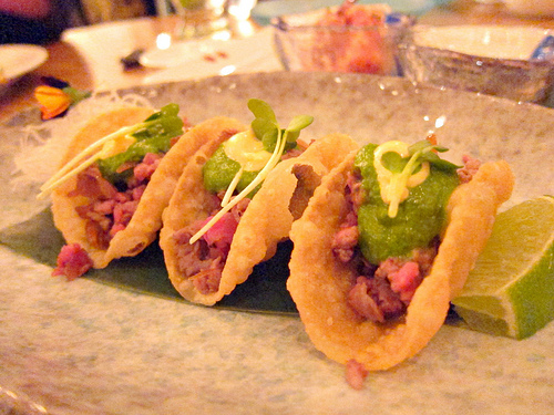 Nobu Style sashimi tacos with lobster (or maybe crab)