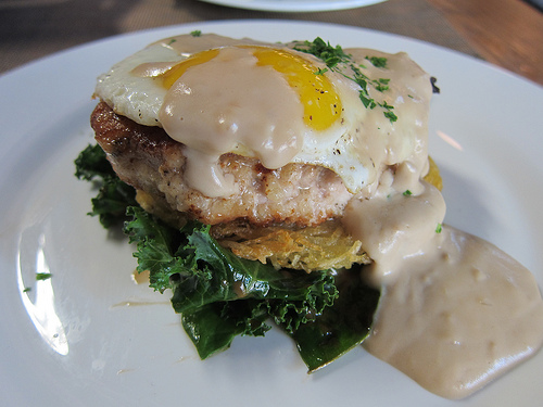 We liked all our food. I was particularly into the prime beef crudo and the broccolini. I liked the chicken fried pork but it was a little small to share (oh, why am I still so hungry…oh, yeah, that’s right). I found it interesting the same crispy potatoes in the dish were the same used in the trout belly burrata appetizer.