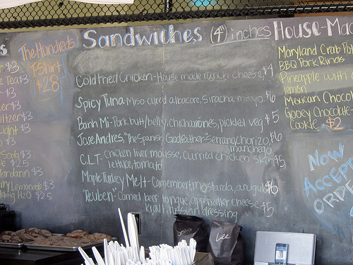 While ink. is completely comfy with a full bar, ink.sack is essentially a take-away business. There are four tables (two inside, two outside). There are no chairs and they do not have water. I was informed they don’t have cups. If you’re eating there, you’re going to crowd around one of the tables with a purchased drink in hand. Perhaps a bag of chips and maybe a cookie if the darling sandwiches didn’t fill you up.