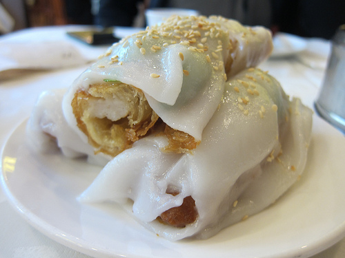 Yum! The skin on those crystal shrimp dumplings looks so pretty. I am also a radish cake girl! (although in Chicago they call it turnip – same thing, right?). Mmm. No one else seems to like it though so I always end up just ordering one for myself. Come to think of it, no one else likes my other favorites: pork and preserved egg congee and shrimp cheung fun (which I’ve always known as “crepe” in Chicago).