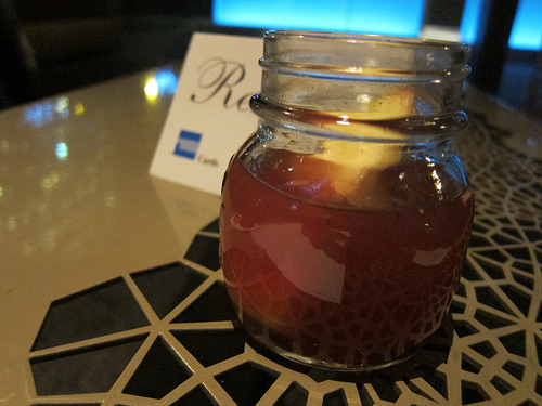I started the night with Remedy X (Blackbush Bushmill’s Whiskey Infused With Rosemary, House Infused Ginger Agave, Lemon) which was perfect. I also tasted Eve’s Demise (Black Grouse Scotch, Brillet Pear Cognac, House-made Hibiscus Apple Cider, Maple Syrup) which is a warm drink. The drink came in an adorable glass jar.